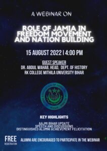 Uncategorized Webinar on Role of Jamia in Freedom Movement and Nation Building Read More » August 12, 2022 No Comments